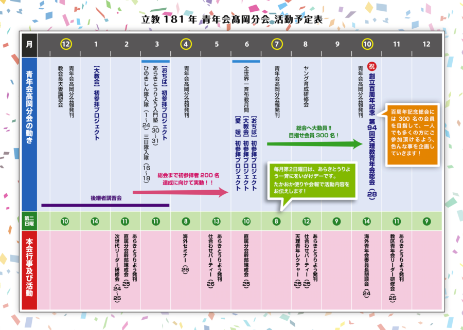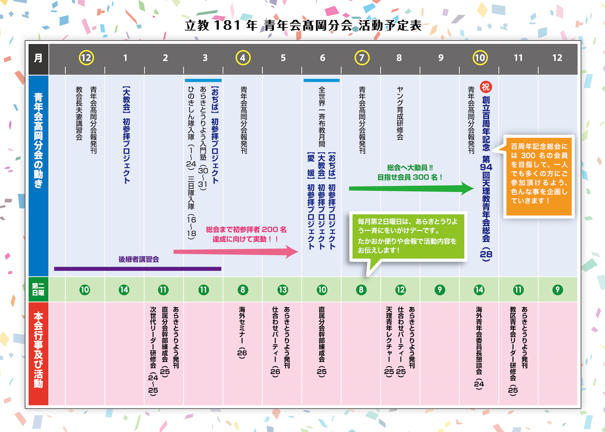 このプロジェクトは、立教181年の1月、3月、6月に高知、愛媛、おぢばの3つのブロックでワクワク(^^)するような活動を通して初参拝を推し進めていくというもの。