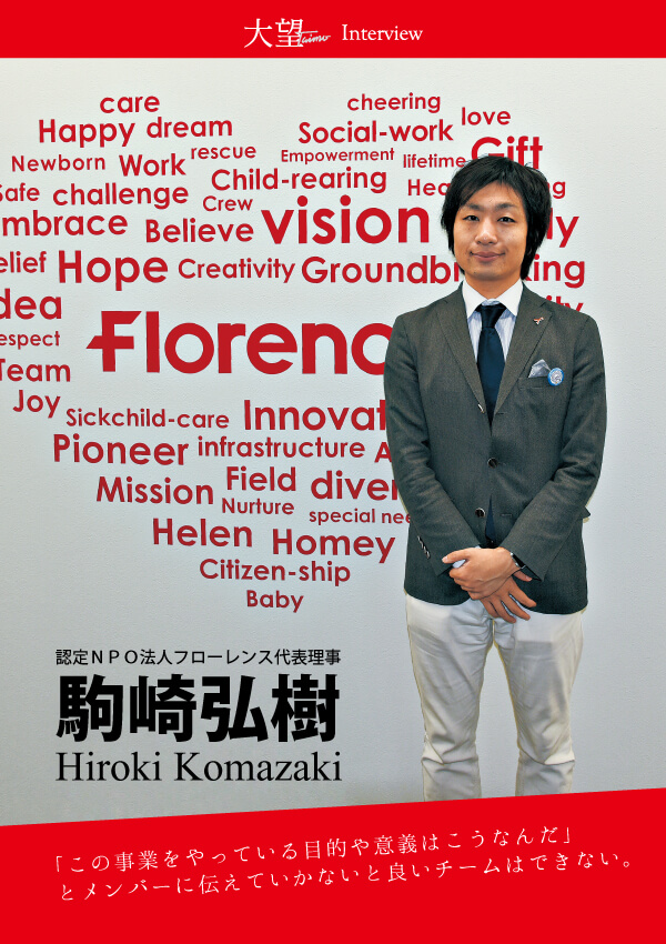 駒崎弘樹氏はある日、「子供が熱を出したので保育園に預けられず、会社を休んで看病したら、クビになってしまった」という女性の話を聞き、保育業界最大の難問である「病児保育問題」の解決に向けて立ち上がった。2004年に認定NPO法人フローレンスを設立し、新たな試みとして、訪問型の病児保育事業を展開。その功績が認められ、07年にはニューズウィーク誌「世界を変える社会起業家100人」に選ばれた。現代社会が抱える課題を解決し、より良い社会の実現に向けて、日日奔走する駒崎氏にお話を伺った。